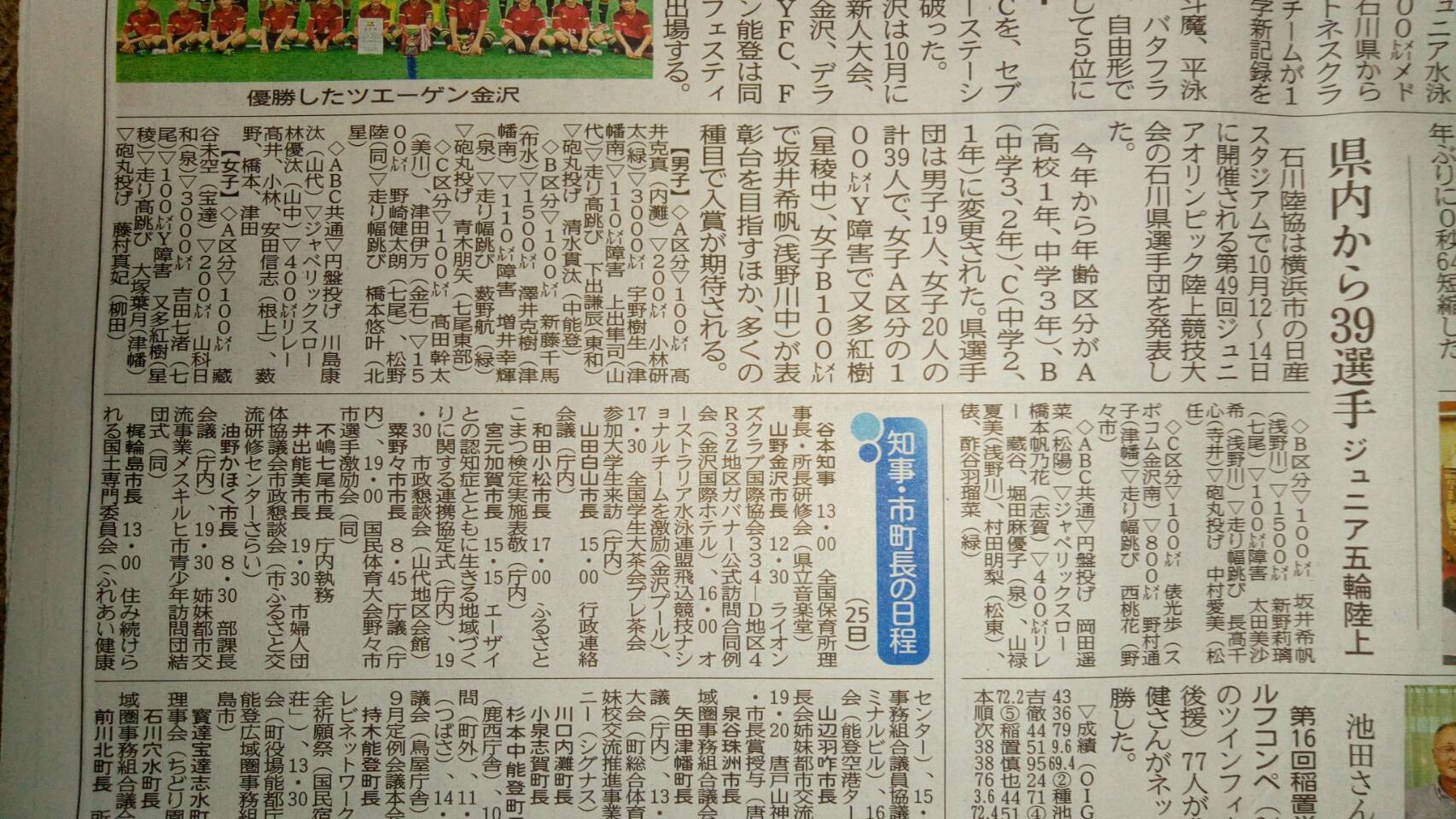 石川陸協 ジュニアオリンピック陸上競技大会 石川県選手団の記事