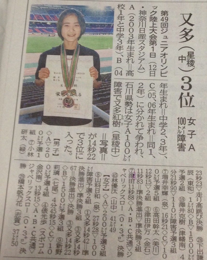 金沢市陸上教室/稲置学園/星稜中学/星稜高校/石川県陸協/